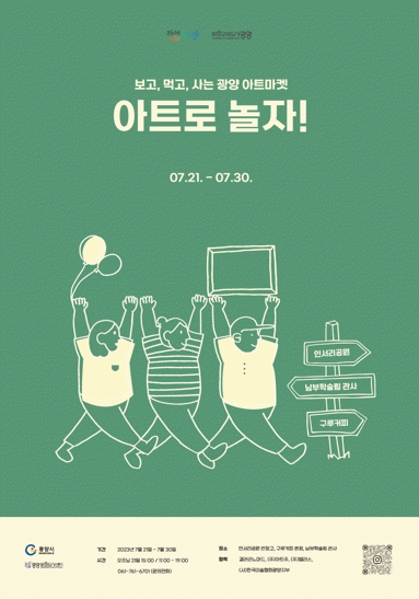 행사를 주관하는 광양문화도시센터는 오는 21일부터 30일까지 총 10일간, 광양읍 주요 문화거점 3곳에서 '아트로 놀자! : 보고, 먹고, 사는 광양 아트마켓'을 운영한다.