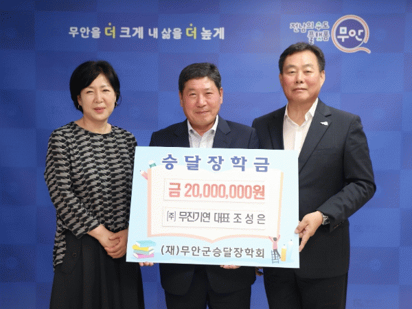 조성은 대표는 이날 기탁식에서 무안에 조금이나마 도움이 되고자 장학금을 기탁하게 됐다며 “학생들이 꿈을 잃지 않고 학업에 정진할 수 있도록 꾸준히 힘을 보태고 싶다”고 전했다.
