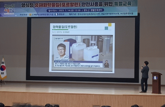 최근 수산 양식산업 현장 유해화학물질 안전 사용에 대한 산업안전보건의 중요성이 강조되고 어업 근로현장 노동자가 대부분 외국인임을 감안해 2024년 1월부터 본격적으로 시행되는 동물용의약품 양성목록시스템(PLS제도)를 소개하고 양식장 근로자(외국인)에 대한 산업재해 예방기준 등 사업자의 책임과 의무에 대한 산업안전보건법 강행 규정을 중점적으로 설명했다.