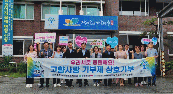 이번 상호기부는 화순군과 곡성군의 상생 발전과 열악한 지방재정 확충에 이바지하고자 추진됐으며, 동면행정복지센터 직원과 천운농협 직원이 고향 발전에 함께 앞장서자는 마음으로 곡성군을 방문했다.