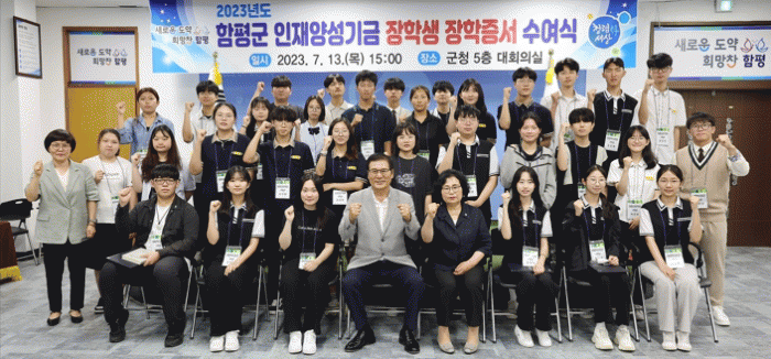 앞서 함평군은 지난 5월 25일 2023년 상반기 인재양성기금 장학생 187명에게 장학금 3억2천500만원을 지급한 바 있다.