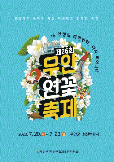 또한, 다양한 이벤트도 진행된다. 토퍼 들고 사진 찍고, SNS 업로드하고 선물 받는 무안여행 ▲토퍼 인증샷 이벤트, 축제장을 둘러보며 숨겨져 있는 5개의 보물을 찾아 선물을 받는 ▲연꽃 AR 보물찾기, 축제를 기념하며 기쁨과 정을 나누는 ▲유기농고구마 아이스크림 ‘설레고’ 나눔 등 이벤트 행사와 선물도 다채롭다.
