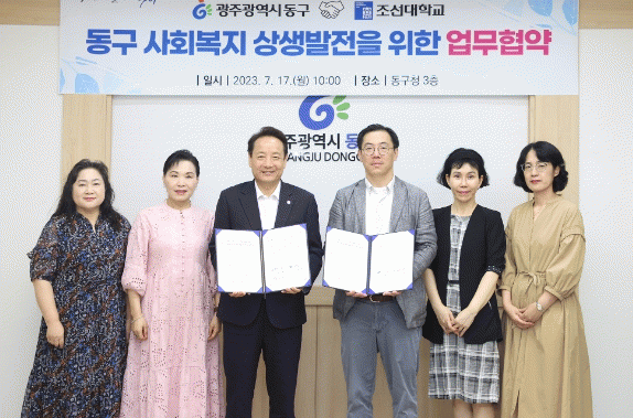 주요 협약 내용은 ▲동구 지역사회 특성이 반영된 복지시책 연구 개발 협력 ▲동구 복지공무원 사례관리 업무 역량 강화를 위한 교육 협력 ▲조선대 행정복지학부 교수의 동구 복지공무원 사례관리 자문 및 수퍼바이저 역할 수행 ▲조선대 행정복지학부 학생과 동구의 공동사업 등에 힘을 모으기로 했다.