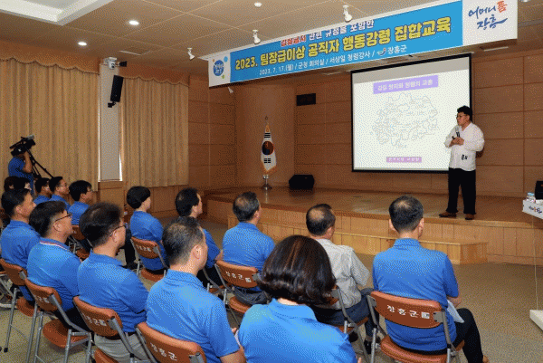 김성 장흥군수는 교육에 앞서 ‘한눈에 보는 공무원 행동강령’ 교육을 참석자를 대상으로 진행했다.
