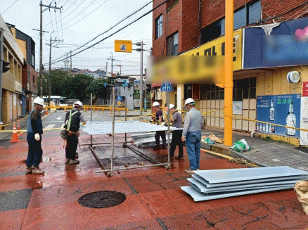 또한 건물 전기·도시가스.수도 등 차단, 건축물 하중 완화를 위한 옥상 물탱크 배수, 건축물 진동경보기 설치했고, 건축구조기술사를 현장 투입해 긴급 안전점검 및 구조재 보강작업(잭써포트 설치 등)을 실시했다.