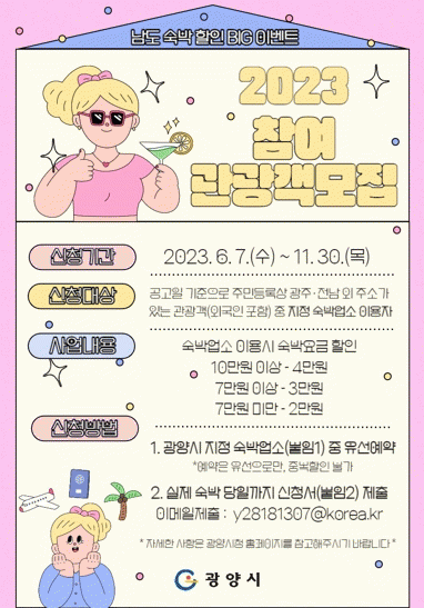 지정 숙박업소 목록, 참여 방법 등 기타 자세한 사항은 광양시청 홈페이지 공고란을 참고하면 된다.