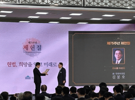 지난 17일 국회에서 열린 제75주년 제헌절 경축식에서 김봉호 전 국회의장은 국회 기반을 공공히 하여 국회 및 국가 발전에 기여한 공로로 감사패를 수여받았다.
