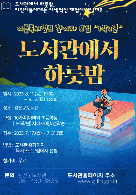 김신석 강진군도서관장은 “도서관에서의 하룻밤이라는 특별한 체험을 통해, 아빠와 자녀들이 공감대를 높이고 이색적인 추억을 만들었으면 한다”며 지역 주민들의 많은 관심과 참여를 부탁했다.