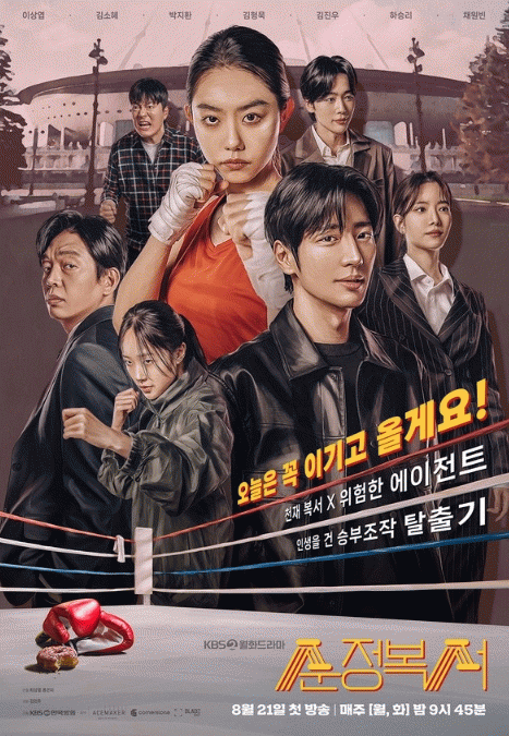 오는 8월 21일 밤 9시 45분 첫 방송 예정인 KBS 2TV 새 월화드라마 ‘순정복서’(극본 김민주 / 연출 최상열, 홍은미 / 제작 에이스메이커무비웍스, 코너스톤, 블레이드ENT)는 교보문고 스토리공모전 제2회 수상작인 추종남 작가의 소설 ‘순정복서’를 원작으로 한 드라마로 사라진 천재 복서 이권숙과 냉혈한 에이전트 김태영의 인생을 건 승부조작 탈출기다.