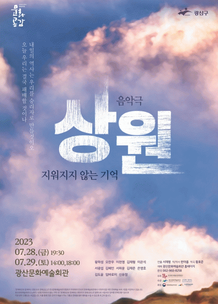 2023년 방방곡곡문화공감 ‘민간예술단체우수공연프로그램’으로 진행되는 ‘상원; 지워지지 않는 기억’ 공연 예매 및 자세한 내용은 광산문화예술회관 누리집을 통해 확인할 수 있다.