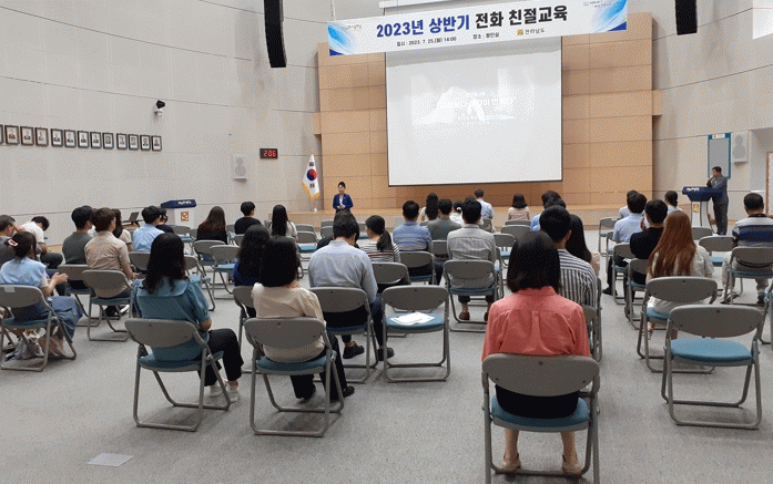 특히 2023년 상반기 전화친절도 조사 과정에서 나타난 전화 민원 응대 우수사례와 부진사례의 녹음파일을 직접 들어보고 문제점과 개선할 점 등을 함께 고민하는 자리를 마련해 교육 효과를 높였다.