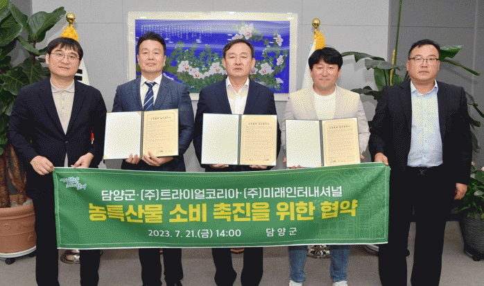 이날 협약을 통해 담양군과 ㈜트라이얼코리아, ㈜미래인터내셔널은 상호 상생협력을 기반으로 지역 농·특산물 소비와 지역경제 활성화에 기여할 것으로 보인다.