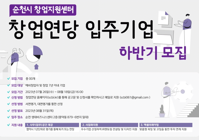 모집 대상은 성장 잠재력이 있는 예비창업자 또는 창업 7년 미만의 초기 창업자(기업)이며, 순천에서 창업을 희망하는 누구라도 신청할 수 있다. 모집 분야는 ▲정보통신 ▲바이오 ▲푸드 ▲농업 등의 기술 기반 스타트업 위주이다.