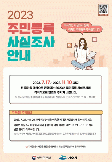 최윤모 민원지적과장은 “정책 수립의 기초이자 정확한 행정서비스의 기반이 되는 주민등록 사실조사에 시민 여러분의 적극적인 협조를 부탁드린다”고 말했다.