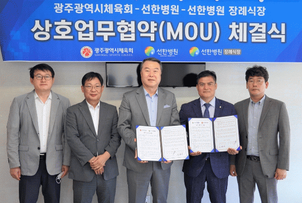 광주 선한병원(서구 무진대로 소재)에서 진행된 협약식에는 전갑수 체육회장, 신현규 선한병원 장례식장 대표를 비롯한 양 기관 임직원 20여명이 참석했다.