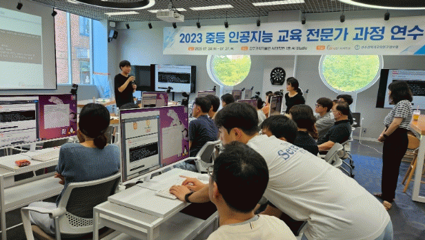 27일 교육연구정보원에 따르면 이번 교육은 미래사회 변화에 대비해 인공지능 교육 분야 전문가를 양성하기 위해 마련됐다. ‘인공지능 응용과 윤리적 책임’, ‘인공지능 발전 동향 분석’ 2개 주제를 중심으로 향후 활용이 쉽도록 실습 중심의 교육이 이뤄졌다. 또 광주과학기술원(GIST) AI대학원의 교수진들이 함께해 연수의 전문성을 더했다.