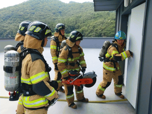 주요 훈련내용은 △훈련 전 상황에 맞는 임부부여 및 안전사고 방지교육 △방화문 개방을 위한 각종 장비 활용방법 △옥내소화전 사용 불능을 대비한 관창 진입방법 △휴대용무전기를 활용한 상호간 상황전파 △훈련강평 등이다.