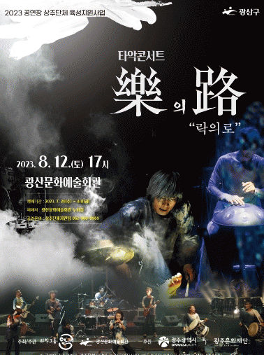 한편, 타악콘서트 ‘樂의路’는 ‘2023 공연장상주단체 육성지원사업’(후원 광주광역시, 광주문화재단)으로 마련됐다. 8월 공연에 이어 11월18일에는 가족 연희극 ‘꼭꼭 숨어라! 토선생 찾기’ 공연이 창작 초연으로 열릴 예정이다.