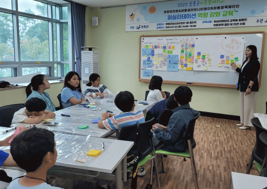교육은 앞서 5월 진행되었던 ‘아동권리 인식 교육’내용을 바탕으로 한 참여적 회의 결과와 6월에 진행한‘법치·민주·인권 체험’ 후 작성한 설문조사 결과를 공유하고, 하반기에 열릴 본회의를 위해 ‘아동정책 제안하기’를 주제로 교육을 진행하였다.