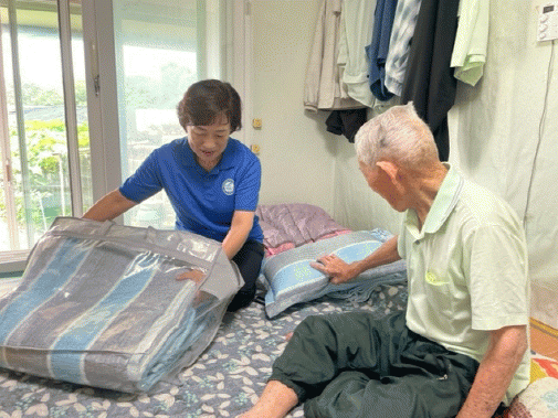 장마와 본격적인 무더위가 시작되는 시기에 집중 호우로 심신이 지쳐 계신 어르신들을 위해 여름이불 전달 및 안부를 확인하고 여름철 폭염시 야외활동 자제, 식중독 발생 증가에 따라 음식물 섭취 주의 등을 당부하며 어르신들이 건강한 여름을 날 수 있도록 도왔다.