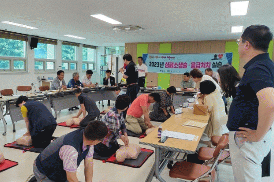 이번 교육은 응급처치의 기본 이론뿐만 아니라, 교육용 마네킹과 자동심장충격기(AED)를 사용하여 1:1 실습도 함께 진행됐으며, 교육을 통해 응급 상황 발생 시 적절한 초기 대응으로 환자의 생존율 향상에 대처할 것으로 기대된다.