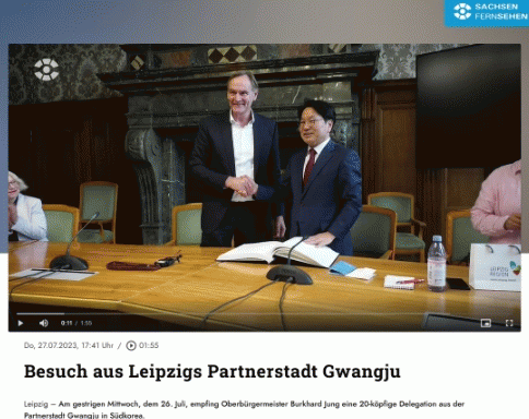 라이프치히 지역언론인 ‘라이프치거 차이퉁(Leipziger Zeitung)’과 ‘작센TV(SACHSEN FERNSEHEN)’는 라이프치히 우호도시인 대한민국 광주광역시의 강기정 시장 등 대표단이 부르크하르트 융 라이프치히시장을 접견했다고 보도했다.