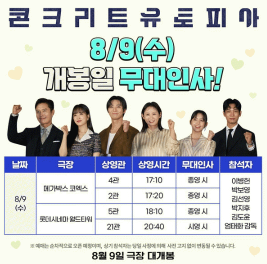 '콘크리트 유토피아' 팀은 이어 개봉 첫 주 주말에도 서울 지역 무대인사에 참석해 관객들과 뜨거운 소통을 이어간다.