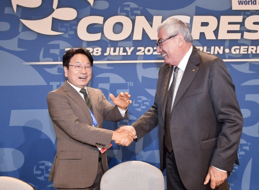 강기정 광주광역시장은 28일(현지시간) 독일 베를린 타이타닉쇼세호텔에서 열린 ‘세계양궁연맹(WA) 총회’에 2025년 차기 세계양궁선수권대회 개최도시 대표자 자격으로 참석, 세계 평화와 축제의 장이 될 수 있도록 광주대회를 철저히 준비하겠다고 약속했다.