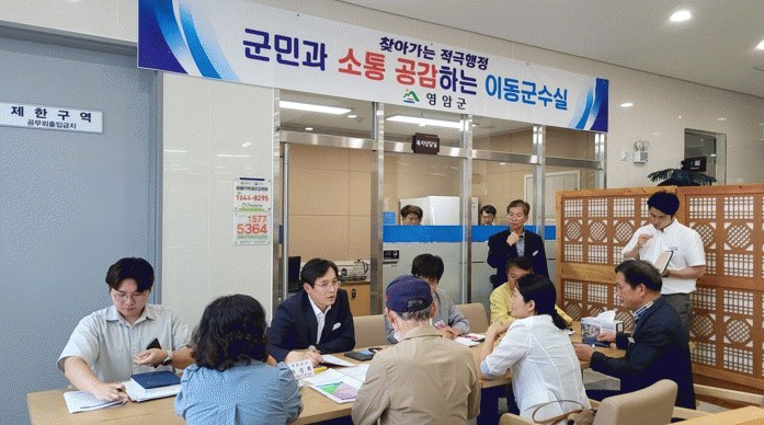우승희 영암군수는 “이동군수실, 목요대화 같은 소통의 장에서 주민 여러분의 이야기를 늘 경청하겠다”며 “군민주권행정 실현을 위해 주민이 제기한 불편사항을 해결하고, 의견과 제안은 군정에 적극 반영해 나가겠다”고 전했다.