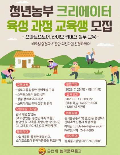 교육에 대한 자세한 사항은 읍면동 행정복지센터와 순천시 농식품유통과로 문의하면 된다.