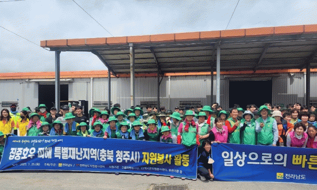 이번 수해복구 활동은 전라남도자원봉사센터 주관으로 전남도 시군에서 모인 200여명의 자원봉사자가 참여했다.
