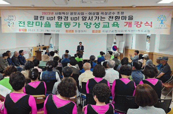 곡성군종합사회복지센터협동조합(대표 신정관)이 주도하는 ‘클린 up! 환경 up! 앞서가는 전환마을 사업'은 깨끗한 환경을 조성하고 지역공동체 형성 등 마을의 지속가능한 발전을 위한 사업이다. 민간에서 자발적으로 진행해 오다 올해 2023년 전라남도 사회혁신 공모사업으로 선정됐다.