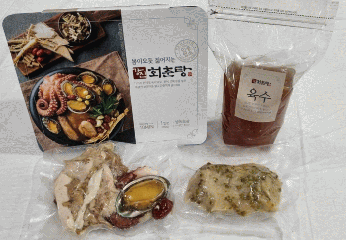 회춘탕 밀키트는 지난 번과 동일하게 1인용으로 포장돼 15,000원에 판매되며, 간기능 회복과 당뇨를 개선하는데 효과가 있는 엄나무를 비롯해 헛개나무, 느릅나무, 당귀, 가시오가피, 칡, 뽕나무 등 11가지 한약재로 진하게 우려낸 육수와 건더기(닭고기, 문어, 전복, 수삼, 대추), 녹두밥 3종으로 구성되어 있어 누구나 쉽고 간편하게 즐길 수 있다.