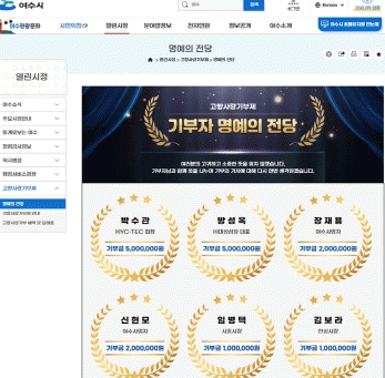 지난 4일 여수시소재 기업체 임원이 100만 원을 기부하면서 명예의 전당에는 총 10명의 고액기부자가 이름을 올렸다.