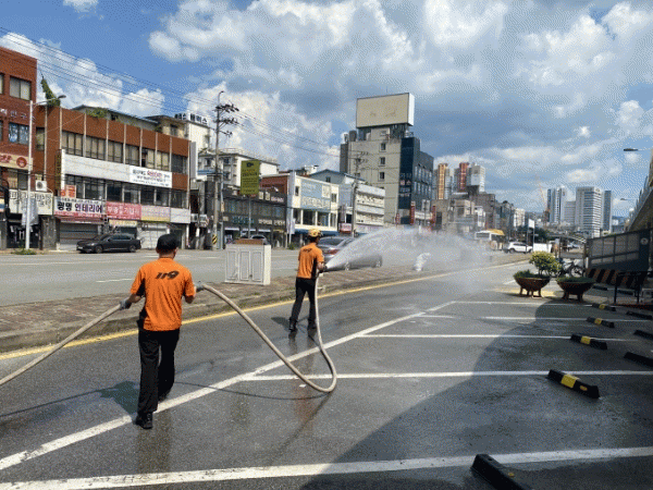 폭염 취약시간대인 오후 2시부터 3시까지 전통시장, 주요 행사장, 노약자 다수 활동지역에 소방차를 활용, 도로 살수 등 대민지원 활동을 펴고 있다.