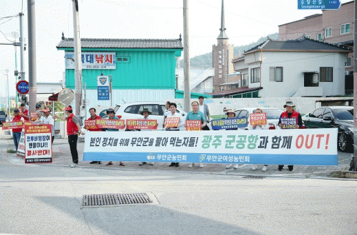 이날 캠페인은 광주 군공항 무안 이전 결사반대에 대한 범군민적 거리 캠페인에 본격적인 시작을 알리는 것으로 무안군농민회, 무안군여성농민회, 청계면이장협의회, 청계면지역대책위원회 회원 40여 명이 참여해 폭염에도 불구하고 이전 반대 여론확산에 최선을 다 했다.