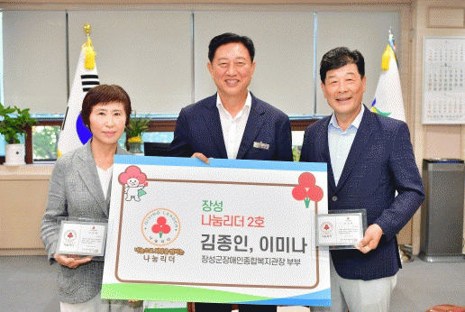 장성군 ‘1호 나눔리더’인 김한종 군수는 “나눔문화 확산에 동참해 주셔서 감사하다”면서 “군도 더불어 살아가는 공동체 구현을 위해 더욱 노력하겠다”고 말했다.