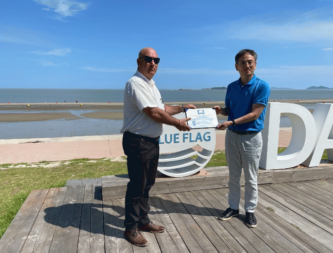 이번 인증은 지난 8. 4.(금) 다니엘 셰퍼 국제환경교육재단 대표, 강대영 한국사무소 이사장이 대광해수욕장을 직접 방문하여 전달했다.
