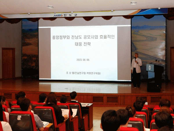 진도군청 대회의실에서 8일 조상필 전남연구원 객원연구위원을 초청해 ‘공모사업 효율적 대응전략’이라는 주제로 교육을 실시했다.