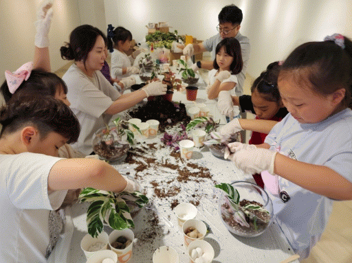 갤러리 107은 지난 7월 27일부터 8월 7일까지 지역 청소년과 군민 150명을 대상으로 여름 예술학교를 운영했다. 테라리움 만들기, 민화 그리기, 쪽물 염색, 조각보 공예 등 다양한 창작 활동이 진행됐고 활동의 결과물로 탄생한 150여 점의 개성 넘치는 작품이 전시된다.