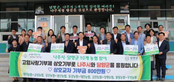 전라남도 나주시는 최근 나주지역 농협지점 5곳과 담양지역 농협지점 5곳이 양 지역 고향사랑기부제에 동참했다고 8일 밝혔다.