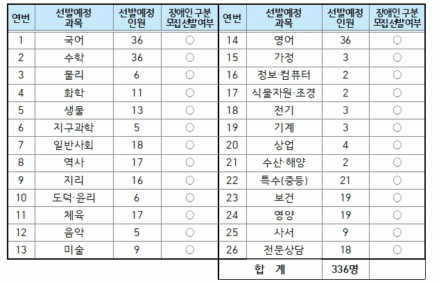 이번 예고는 개략적인 선발예정 과목 및 인원을 안내한 것으로, 최종 선발 과목·인원·시험의 세부 사항은 9월 13일 유·초등, 10월 4일 중등 시험시행계획 공고를 통해 안내된다.