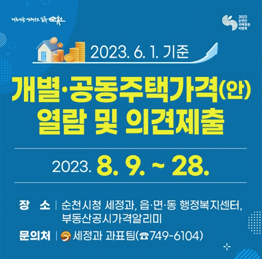 열람은 순천시 누리집과 부동산공시가격알리미에서 가능하며, 가격에 의견이 있는 소유자 등은 의견제출 기간 내 순천시청 세정과 또는 각 읍면동 행정복지센터에 의견을 제출하면 된다.