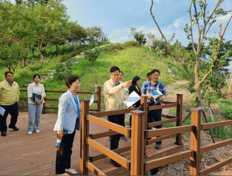 이날 현장 방문은 김용관 산림청 산림보호국장, 문미란 전남도청 산림휴양과장 등 총 8명이 방문했으며 조성 현장을 확인하며 사후관리 방안에 관하여 이야기 나누고 신규 조성지인 만큼 다가오는 태풍의 사전 대비를 당부했다.