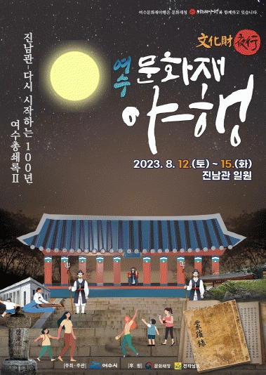문화재청 공모사업으로 추진되는 ‘여수 문화재 야행’은 단순한 문화재 관람 형태를 벗어나 저녁 6시부터 11시까지 야간시간에 여수의 특색 있는 문화재를 활용, 8야(8夜)로 구분된 프로그램을 선보인다.