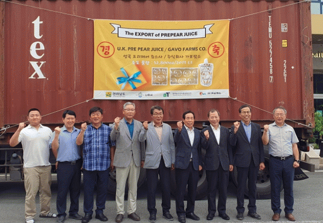 영국 신시장을 개척할 나주배즙 수출 물량은 6.3톤(컨테이너 1대) 규모 5만2000봉지로 한화 기준 4500만원의 판매고를 올렸다.