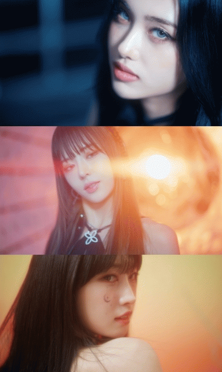 먼저 아샤, 이유, 시현의 영상이 공개됐다. 아샤는 암전된 공간 속 과녁 앞에 서 엣지있는 포즈를 취하고 있다. 블랙 컬러로 매치한 시크한 스타일링부터 고양이처럼 빛나는 눈동자도 매력을 더한다.