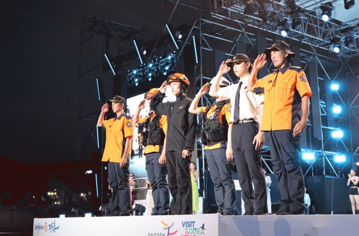 개막식 주제공연은 장흥의 역사적 인물과 스토리를 탐진강과 물을 매개로 보여주는 형식의 워킹쇼로 진행됐다. 이날 워킹쇼에서 장흥소방서 직원들은 소방공무원 직무별 복장(방화복, 기동복, 근무복 등)을 착용하고 모델들과 함께 주무대 워킹을 실시했다.