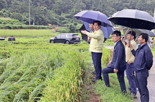 군 관계자는 “도복 된 벼의 경우 가급적 수확할 수 있는 필지는 수일 내 수확하고 등숙이 필요한 벼는 수발아 예방을 위해 즉시 물을 빼주고 잎집무늬마름병, 도열병 등 철저한 방제를 통해 병해충 관리에 신경 써 주시길 당부드린다.”라고 말했다.