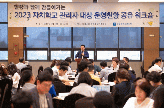 이번 워크숍은 ‘광주형 미래학교’ 중 하나인 ‘자치학교’의 안정적인 운영과 자치학교가 중심이 되는 협의체 구성을 위해 진행됐다. 현재 자치학교는 107개교(원)에서 운영 중이며 자율성을 바탕으로 지역사회의 특성, 학생·학부모의 필요와 요구 등을 반영한 다양한 교육과정을 개발·실천하고 있다.